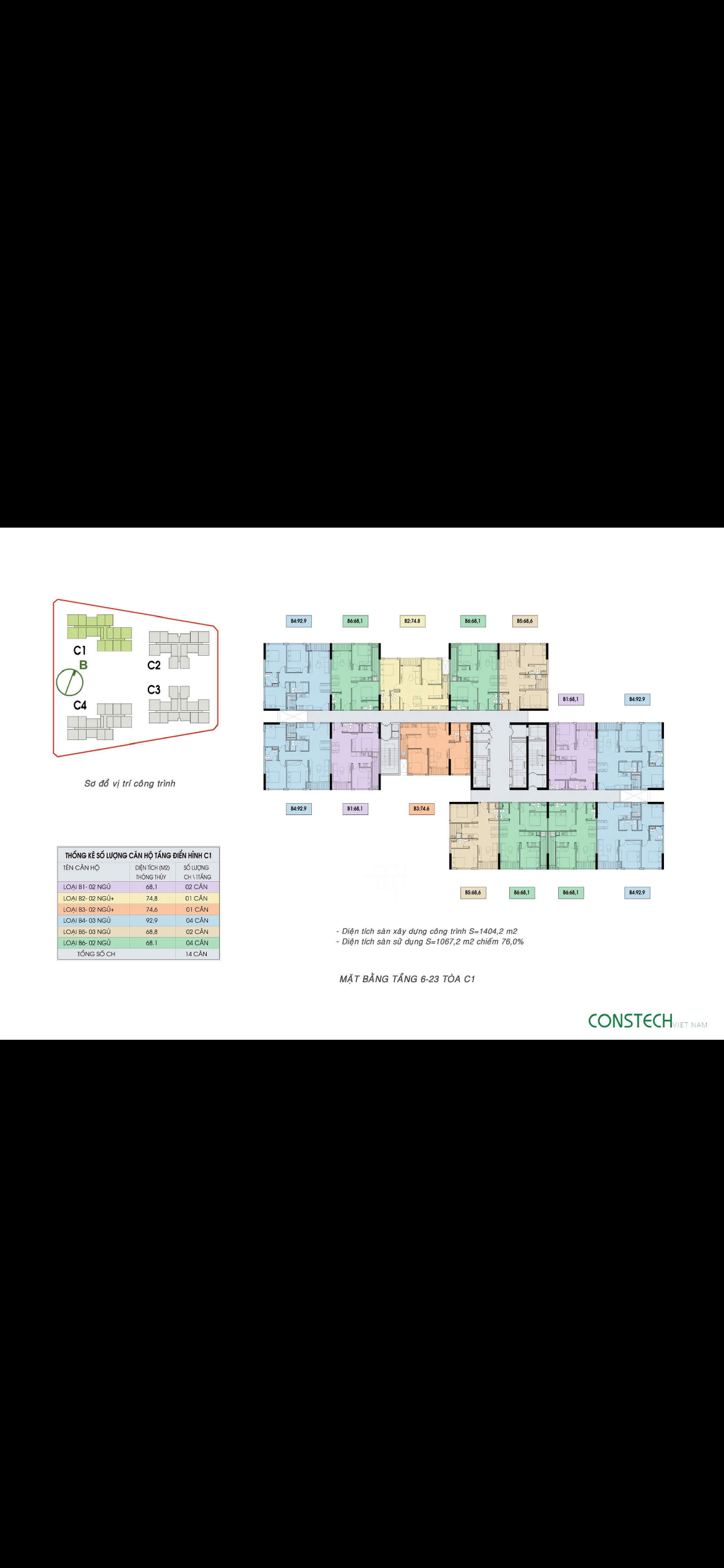 Diện tích sử dụng: 69m2