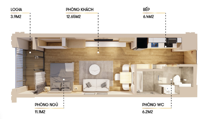 Diện tích sử dụng: 42 m2